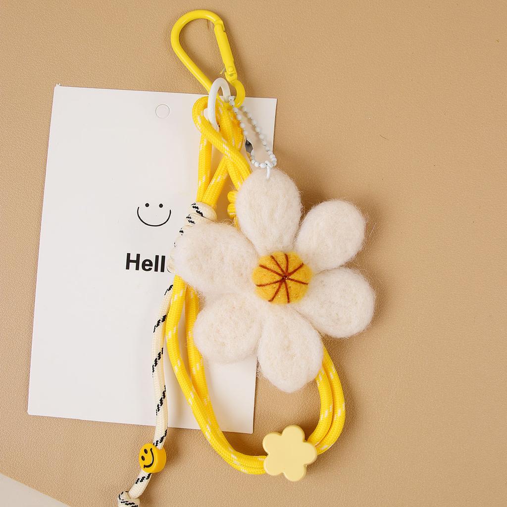 Handmade Nepalese wool felt cute fringed smiley face sun flower daisy women's bag pendant car hanging keychain