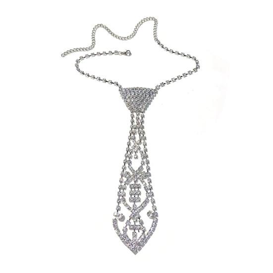 This exquisite tie features a rhinestone inlay that adds a touch of sparkling and elegance, ensuring you stand out with charming confidence. Crafted to resist deformation and fading, it maintains its stunning appearance over time. Designed for convenience, this tie requires no manual tying—simply wear it like a necklace with an adjustable fit for easy use.