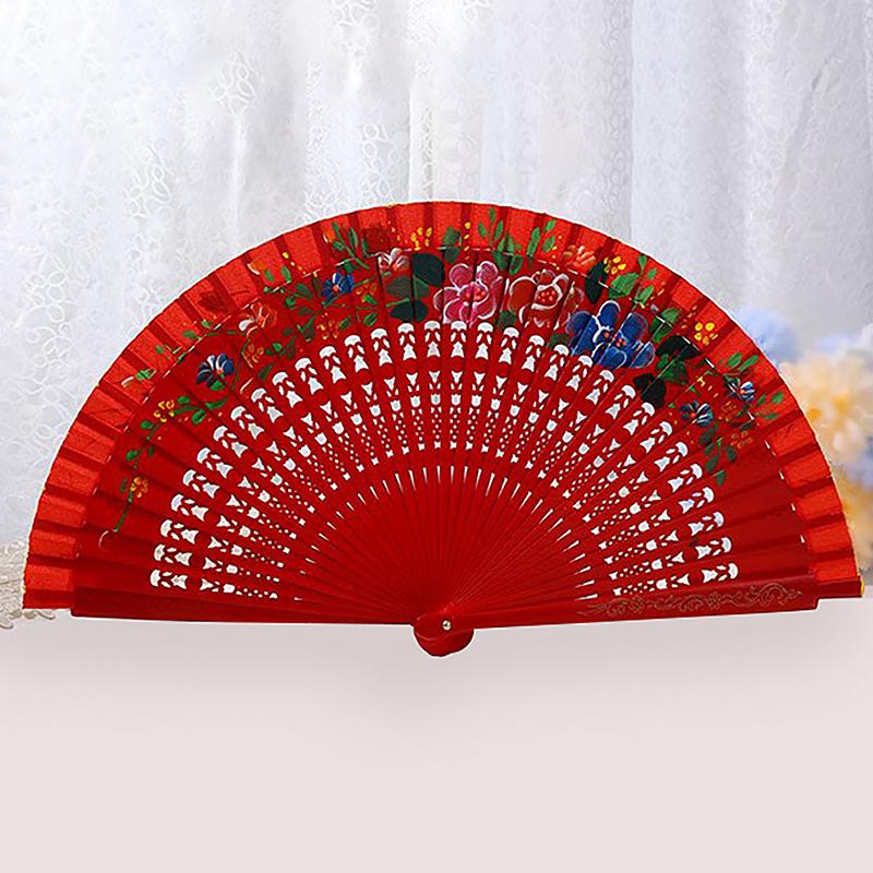 1Pc Chinese Style Double-Sided Folding Fan Hollow Double-sided Craft Gift Dancing Printing Wood Spanish Hand Fan Party Supplies