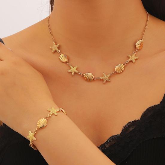 This exquisite jewelry set features a three-dimensional marine design, with starfish and shell pendants crafted using advanced texture technology to capture natural forms. Adorned with delicate small pearls, it evokes a vibrant summer seaside vibe. The set includes earrings, a bracelet, and a necklace, all harmoniously combining starfish, shell, and pearl elements for effortless vacation styling.