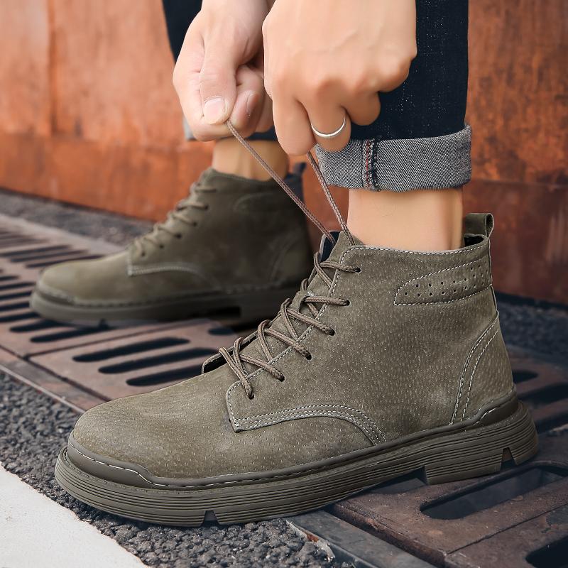 2026 Autumn Men Boots Street Trend Motorcycle Boots Winter Flat Lace-up Suede Ankle Boots Thickened Botas Hombre Piel