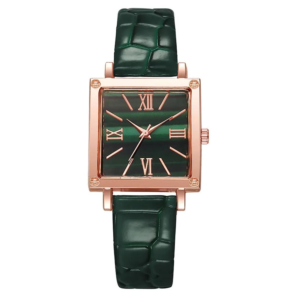 Green Women's Watch Set Fashion Trend Simple Rectangular Dial Quartz Watch Perfect Gift