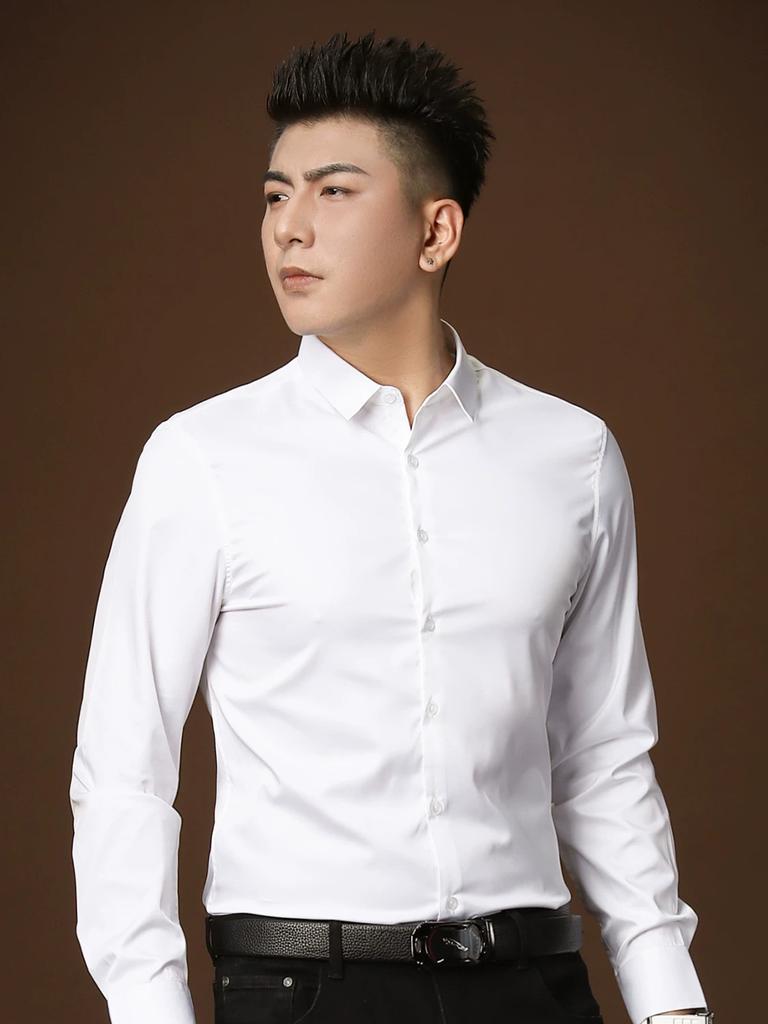 European Style Solid Color Long-Sleeve Shirt, Trendy Men's Fashion Top, Slim-Fit Base Shirt, Casual High-End Shirt