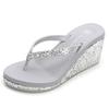 New summer Sequins Thick Bottom Slippers Sandals Summer Women Beach Wedges Shoes Sexy High Heel Rhinestone Flip Fops women