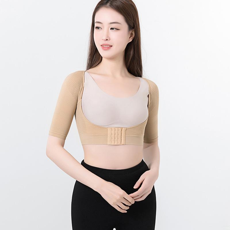 1. This arm compression garment with 1/2 sleeve design can effectively hide any unwanted arm flab and fat bulges. The arm shaper provides moderate compression for your upper arms and does a great job shaping your upper body. This arm compression garment effectively tightens flabby skin and reduces arm fat instantly.