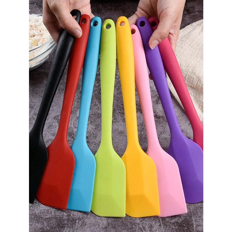 1pc Large Heat-Resistant Flexible Silicone Baking Spatula, Random Color, Easy To Clean, Kitchen Baking Tool, Cream Scraper