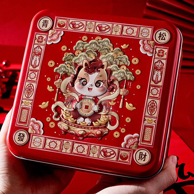 Chinese New Year Tinplate Candy Tin Can Metal Box Cartoon Year Of The Horse Panda Printed Candy Cookie Tea Storage Gift Case