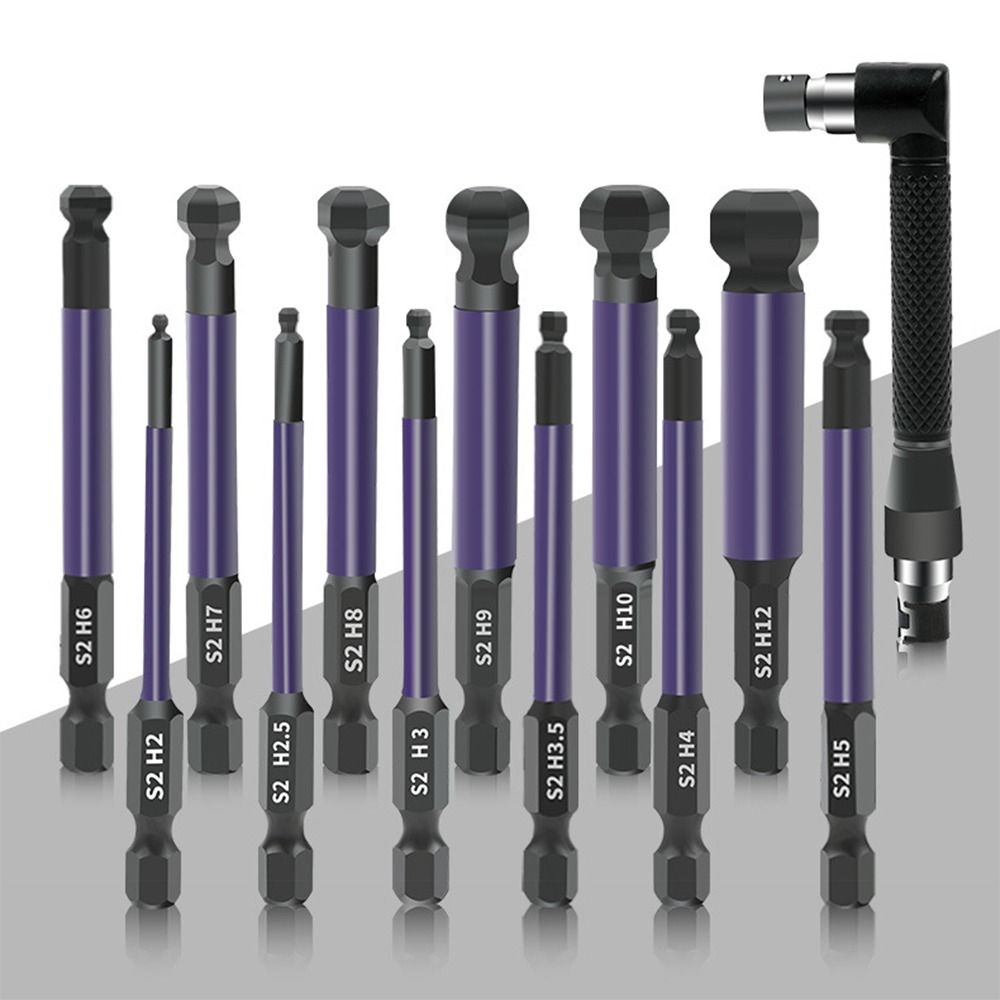 3.Magnetic: Include 12 ball end screwdriver bits:2mm(0.08in),2.5mm(0.10in),3mm(0.12in),3.5mm(0.14in),4mm(0.16in),5mm(0.20in),6mm(0.24in),7mm(0.28in),8mm(0.31in),9mm(0.35in),10mm(0.39in),12mm(0.47in). With Clear sizemarkings, you can choose the size you need faster. More convenient to useand store it.