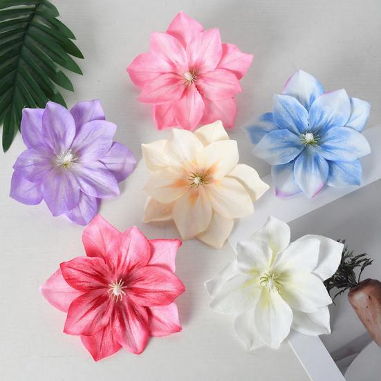 This artificial flower head offers exceptional malleability, allowing you to create stunning bouquets, flower walls, background decorations, hair accessories, brooches, and more. Crafted from high-quality materials, each flower head features a soft, delicate texture with vibrant colors that resist fading, providing a luxurious and realistic appearance. The three-dimensional petals showcase clear textures and layered details, perfectly mimicking the natural gradient and shape of clematis flowers.