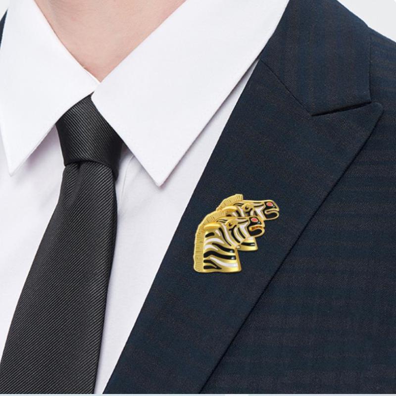 Vintage Enamel Animal Zebra Head Brooch For Women Clothing Coat Accessories Gifts