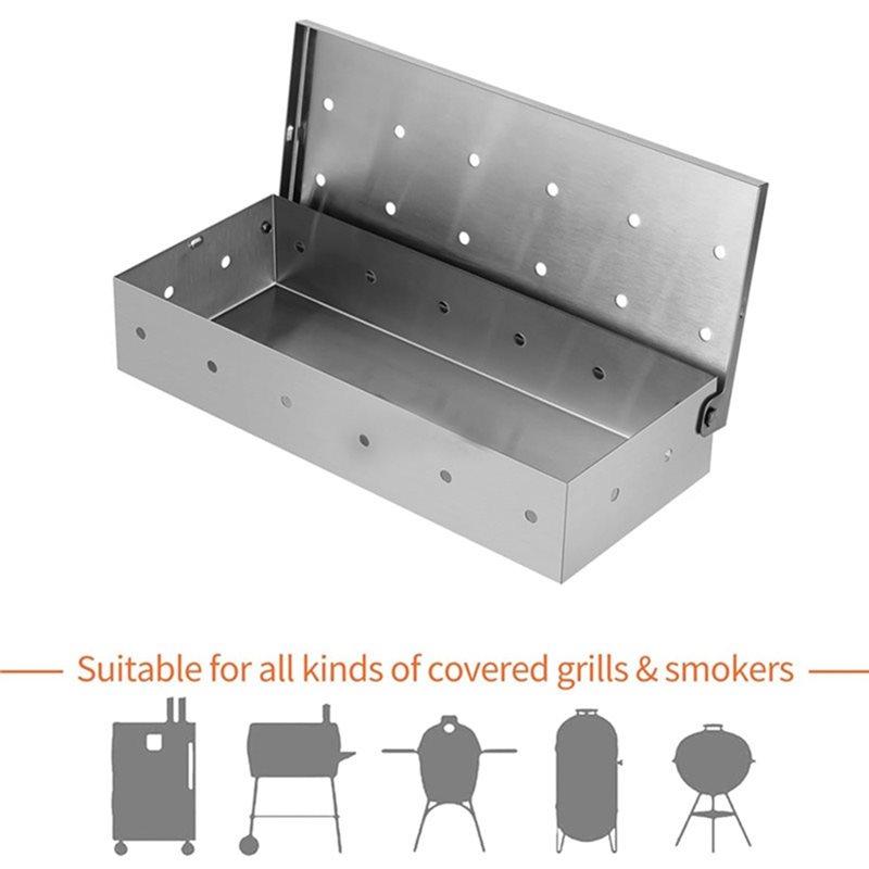 Good-Stainless Steel BBQ Smoker Box Wood Chips Indoor Outdoor Charcoal Gas Barbecue Grill
