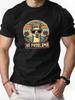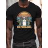 European Size Men'S Casual Llama Print T-Shirt, Cotton Knit Fabric, Stretchy Lightweight Top with Geometric Pattern for Round Neck Short Sleeve Tee