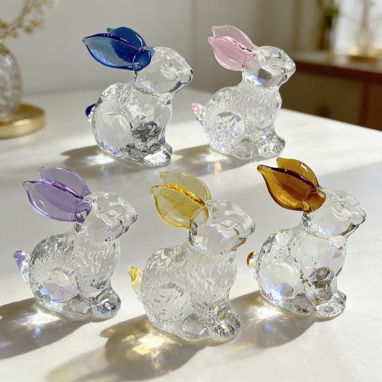 This glass bunny figurine features exquisite detail restoration with coordinated proportions and realistic design, capturing a natural and charming look in a compact size. Handmade with transparent, shiny ornament, it showcases delicate textures and dynamic beauty under light and shadow.