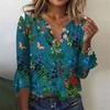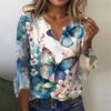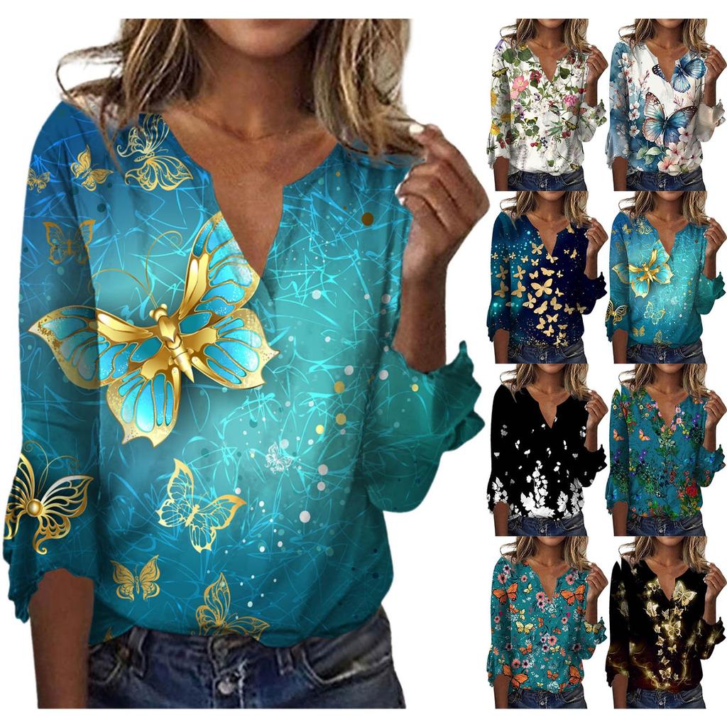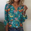 Women's Top Loose Casual V-neck Printed Blouses Bell 3/4 Sleeve T-shirt