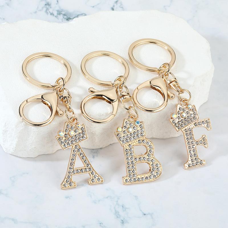 Unique Crown Crystal Rhinestones A-Z Letters Pendant Keychains For Men Women 26 Alphabet Car Key Ring Name Jewelry Keyrings Gift