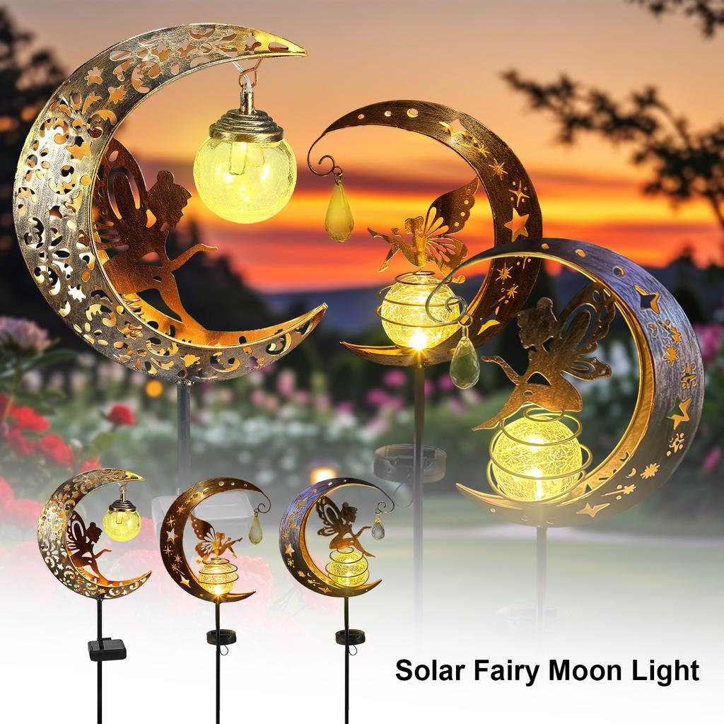 1 Pc Solar Outdoor Garden Lights The Moon and The Fairy Fairy Lights Waterproof Crackle Glass Globe Led Landscape Lighting