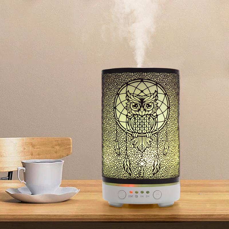Bedside Table Light Seven-color Atmosphere Night Lights 100ml Aroma Diffuser Timer Hollow Owl Ultrasonic Air Humidifier for Home