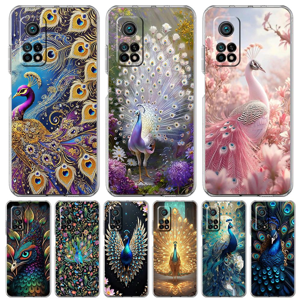 Transparent Phone Case for Xiaomi Mi 14 13 12 11 Ultra 13T 12T 11T Poco X3 NFC F3 F6 Pro 5G Soft TPU Animal Cute Peacock Pattern