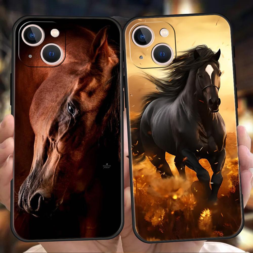 Horse Phone Case Cover for iPhone 15 14 13 12 Pro Max XR XS X 11 7 8 Plus SE 2020 13 Mini Silicone Soft Shell Capas Bags Coque