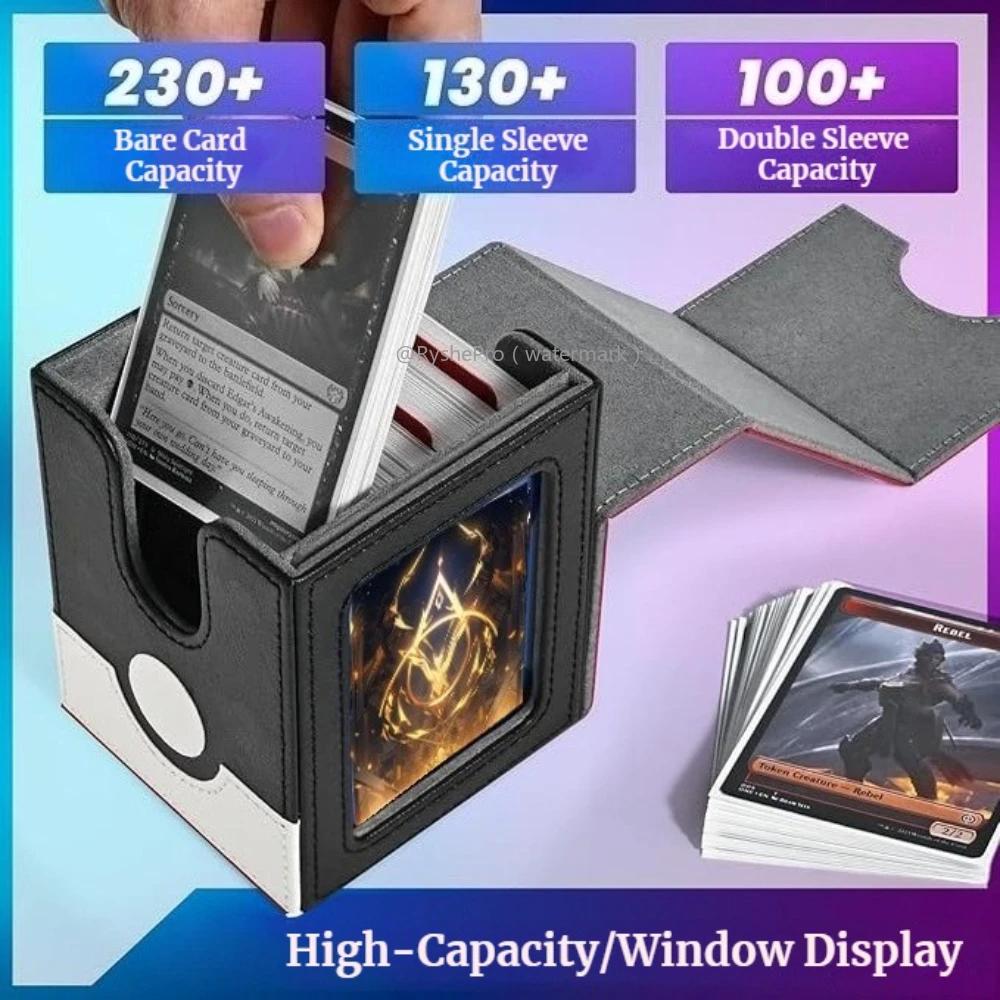 100+ Load Trading Card Deck Box with 2 Dividers Game Card Storage Box PU Magnet Sports Card Deck Case Holder
