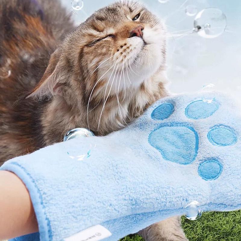 Paw Bathing Towel For Cats Puppy, Machine-Washable Reusable Pet Grooming Towel - Soft, Absorbent Quick-Dry Bath Mitt