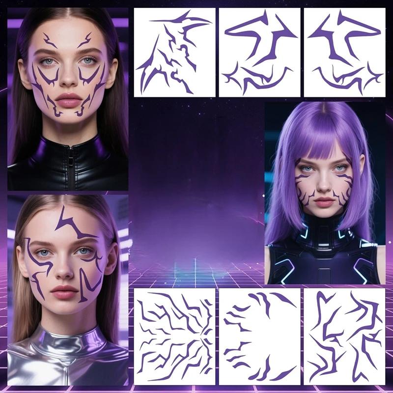 2025 Demon Hunters HUNTRX Rumi Laser Tattoo Stickers Tech Anime Cosplay Stage Lightning Makeup Face Decals Futuristic Reflective