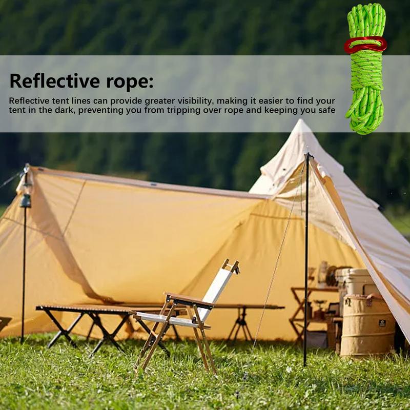 2.Increased Safety: Reflective paracord to avoid tripping on ropes in low light conditions. Enhances visibility, keeps you safe, and makes it easier to find your tent in the dark.