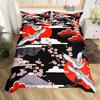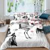 Japanese Style Crane Soft Duvet Cover Set Ful Sized Dimensions,Exotic Red Sun Sea Waves Beding Sets,Vintage Ukiyoe Traditional Warm Comforter Cover
