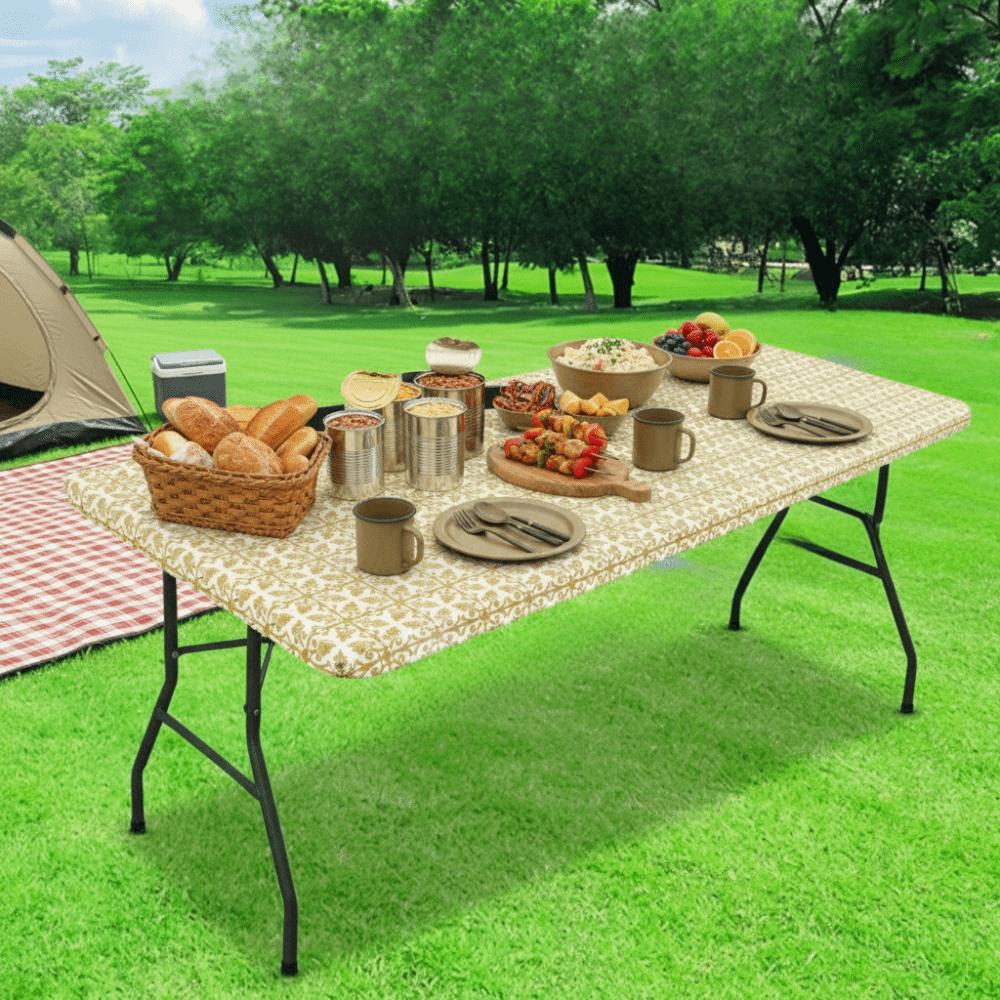 Waterproof Baroque Print Elastic Fitted Tablecloth Rectangular Outdoor Fold Table Cover Picnic