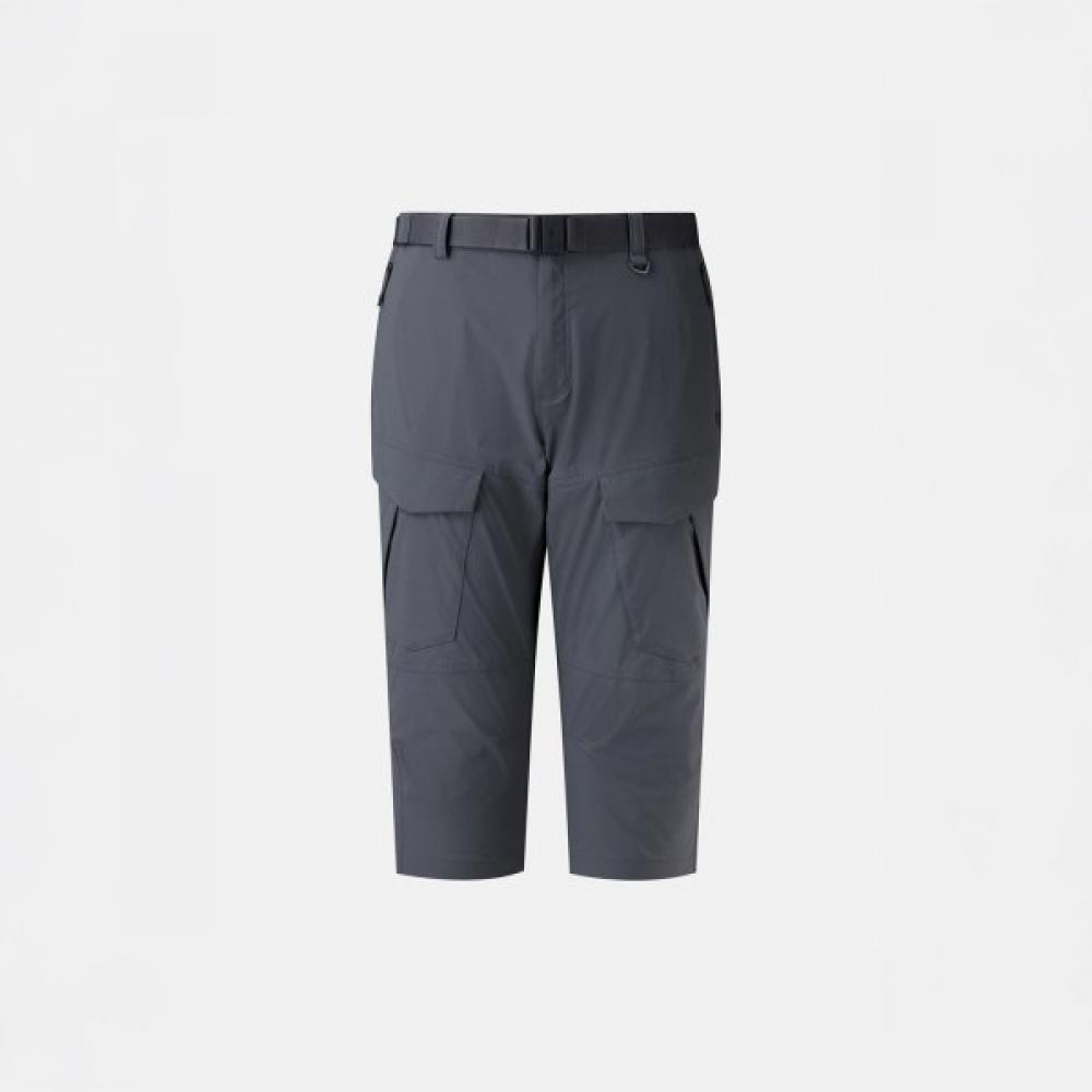 The Men's Cargo 7/8 Pants JWPOM25231DGY incorporates cargo details with a knee-length design. The active-friendly design enhances comfort with its knee-length cut. It features a gusset detail that allows for ease of movement. The waist is reinforced with an elastic band for excellent wearability, and it includes a detachable belt for versatile use in various situations. A D-ring for attaching a carabiner is located on the left waist. It is equipped with a total of six pockets for increased storage capacity.