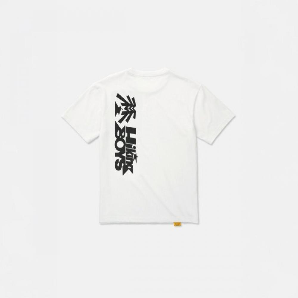 This is a graphic short-sleeve t-shirt co-created by KOLON SPORT and PAPERPRESS. The evergreen logo, reinterpreted from PAPERPRESS's perspective, and the "Hiking Boys" graphic on the back serve as focal points. The fabric blends cotton with "SORONA COOL" cooling fibers to provide a refreshing feeling against the skin. The semi-over fit allows for comfortable wear, with the front featuring an evergreen logo and the back displaying the "Hiking Boys" graphic. It can be worn alone or as part of the PAPERPRESS collaboration series.