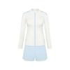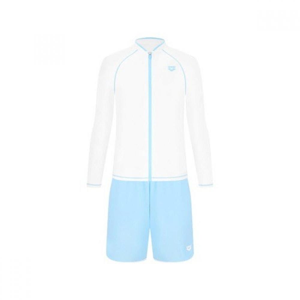 The Men's Wavy Regular-Fit Zip-Up Rashguard Set is suitable for indoor swimming and water sports, combining functionality and style. It features breathable materials and an elastic design for excellent wearing comfort, while avoiding transparency for comfortable wear. The hip provides support and the regular fit is designed for ease of movement in various exercise environments.
