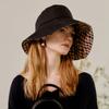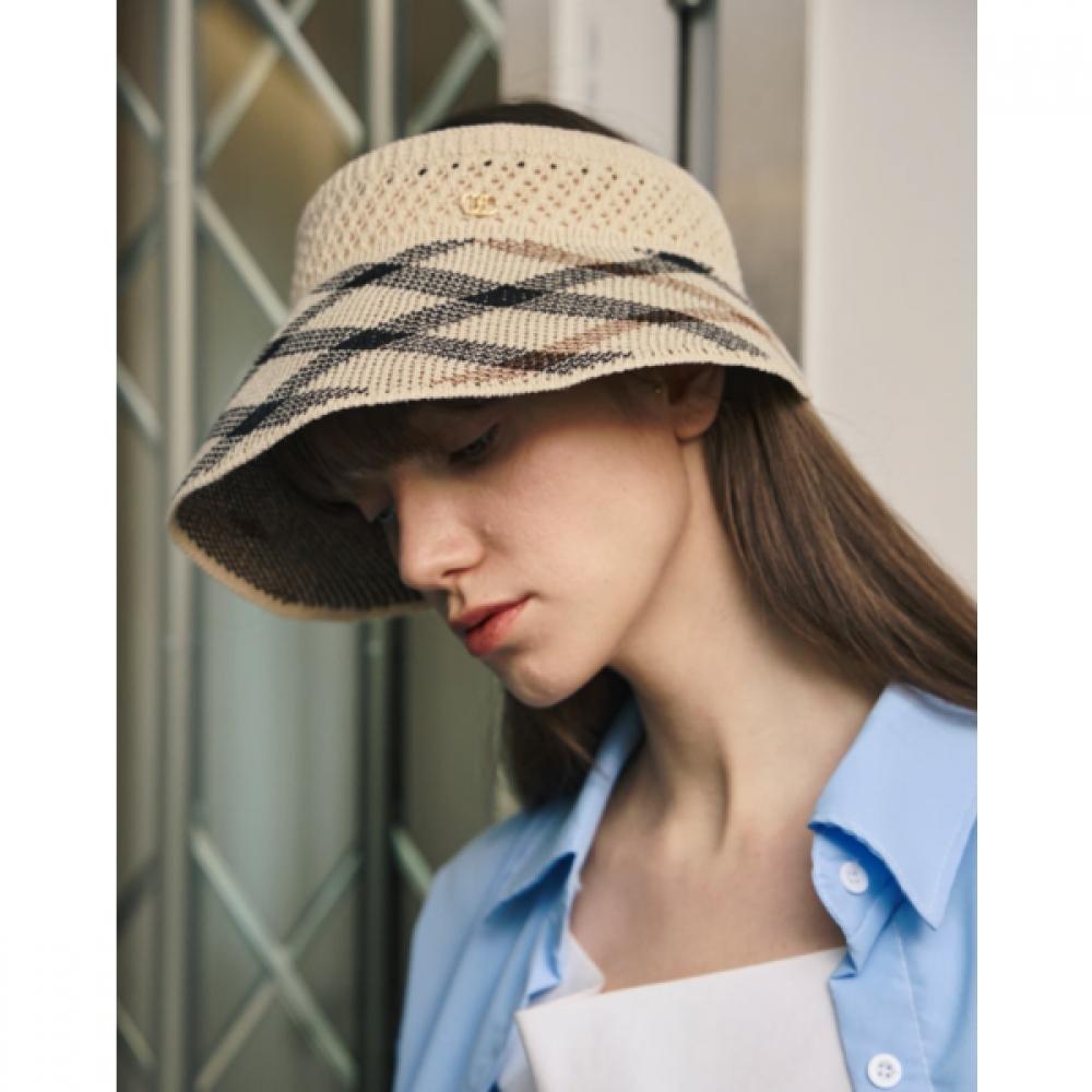 The Daks DD Metal Ornament Brown Check Knit Packable Sun Cap, model number DCHE6E257W2, features an eye-catching brown check pattern and is made of breathable knit material that allows comfortable wear during the summer. With its packable function, it can be easily folded for storage, making it highly portable. The DD metal ornament adds a touch of luxury, while the back string detail enhances versatility.