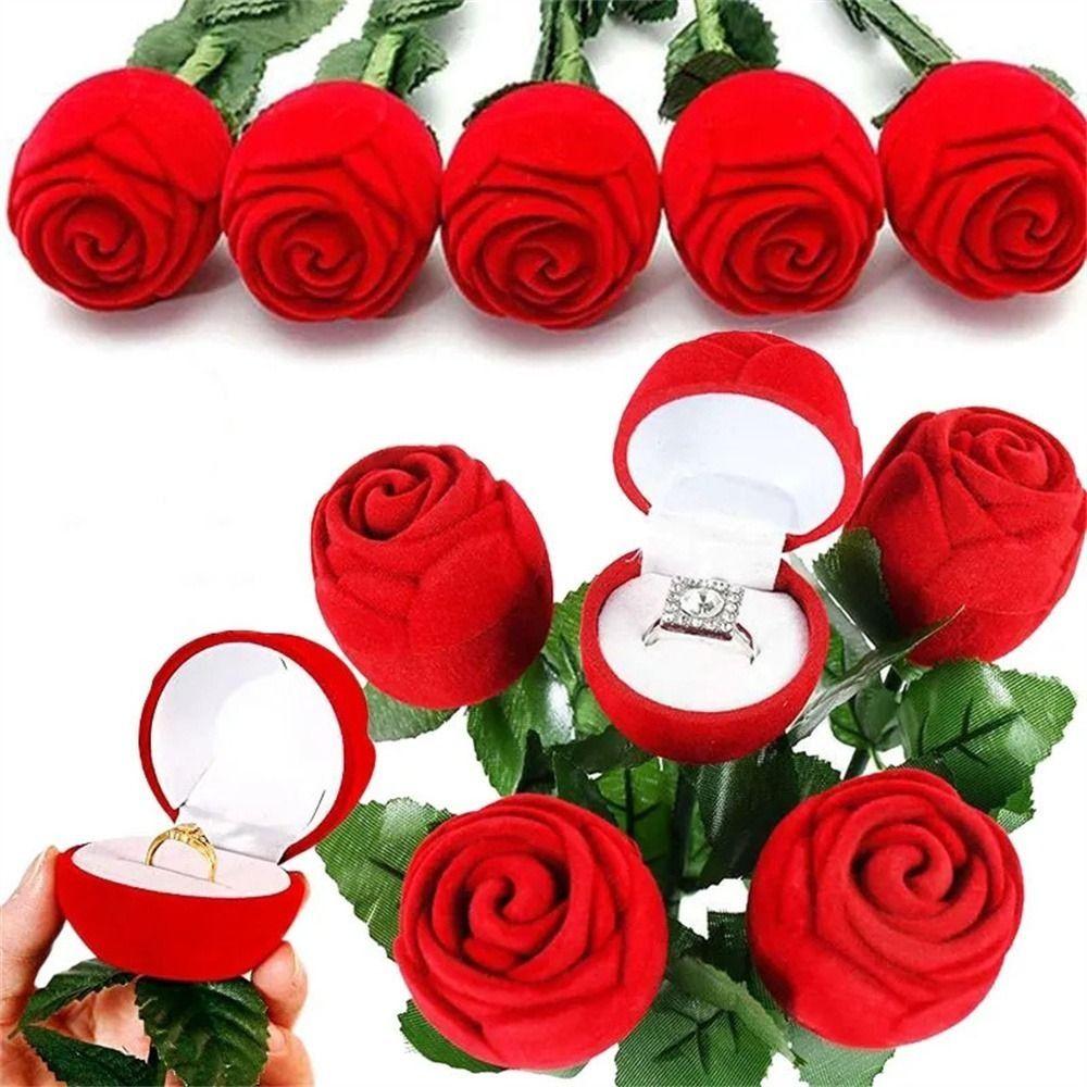Simulation Flower Rose to Ring Box with Leaves Flower Wedding Ring Box Jewelry Storage Case
