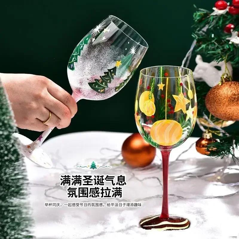 1pcs Christmas Series Red Wine Glasses Festival Cartoon Pattern Crystal Glass Cup Christmas Party Red Wine Champagne Glasses