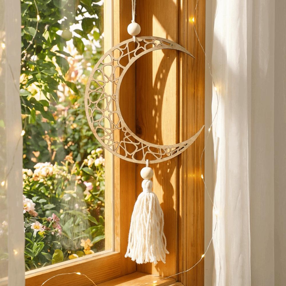 Handmade Moon Star Hollow Mesh Wall Decor Wooden Handicraft Pendant Ramadan Celebration