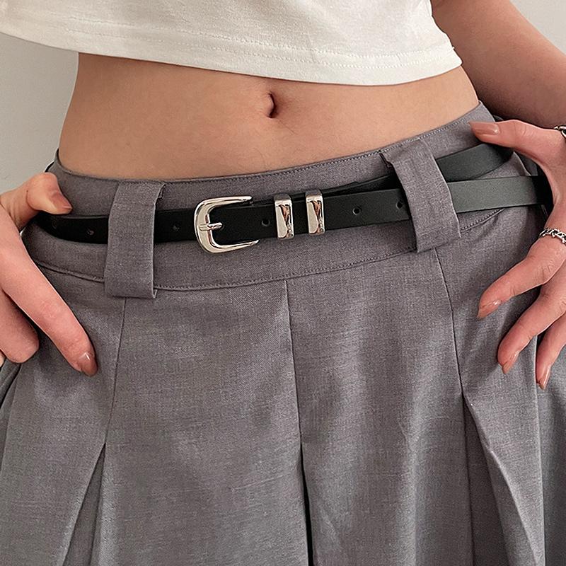 Fashionable Simple Thin Belts For Women Girls Minimalist Solid Color Versatile Belts Creative Alloy Buckle Decoration Belt