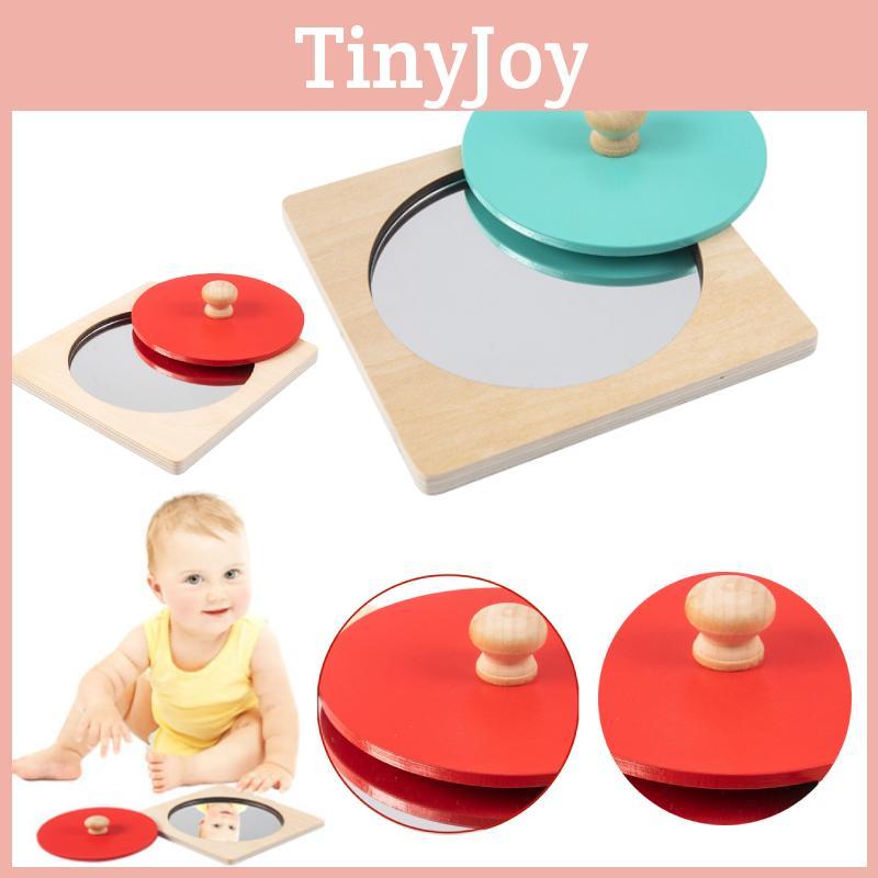 Hoshi Baby Wooden Montessori Mirror Peekaboo Knob Puzzle, Infant 3mos+ Tummy Time Toy