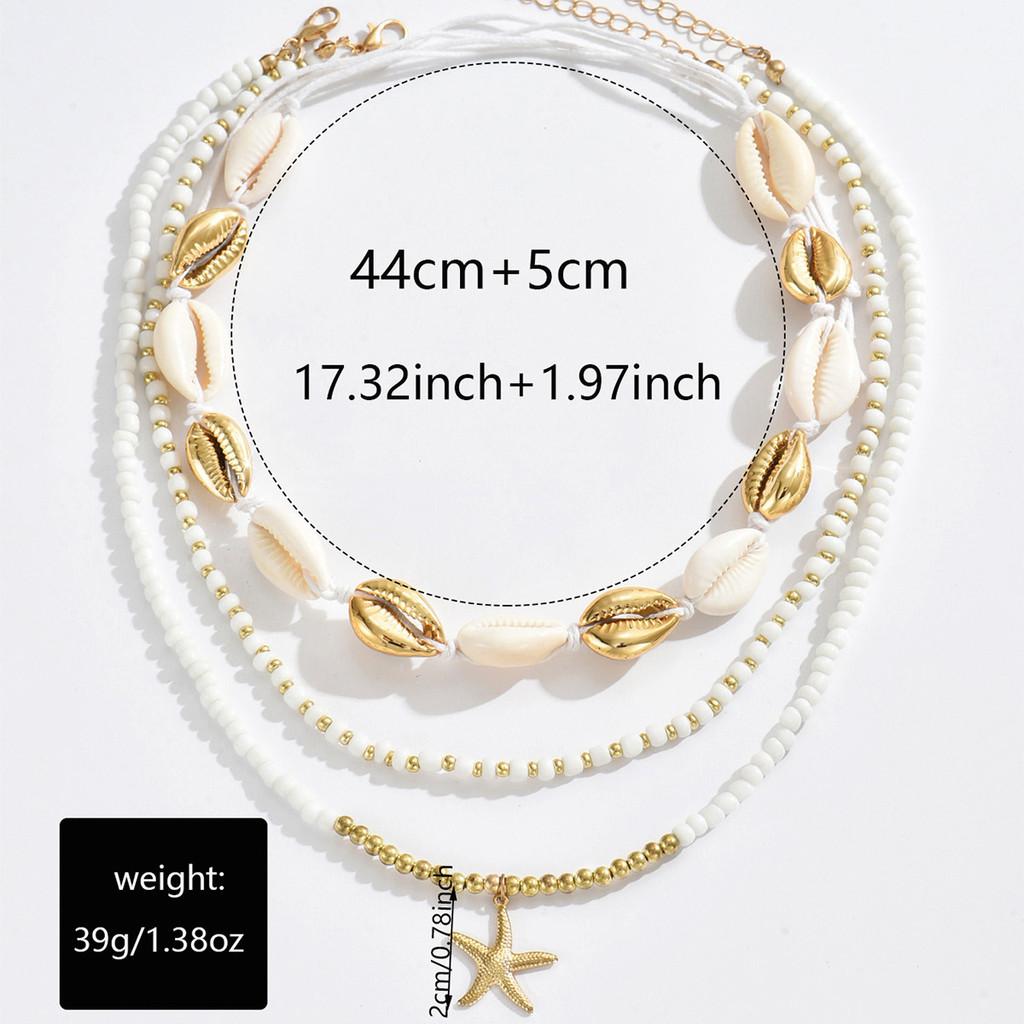 This bohemian shell necklace set features a layered design with geometric shapes, combining plastic and resin materials for a lightweight feel. Measuring 16.1 to 19.7 inches in length, it includes a metal pendant accented with shell motifs, perfect for casual beach or summer outings. Wipe clean with a damp cloth to maintain its appearance.