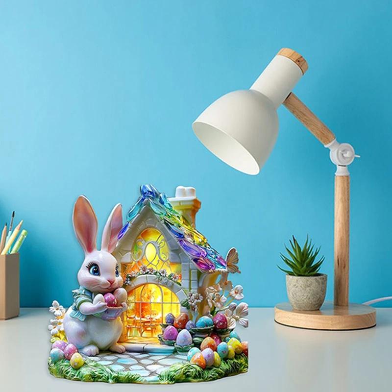 Easter Bunny Ornament Flat Acrylic Ornament Rabbit House Single Desktop Home Office Garden Ornament Yard Decoration Gift