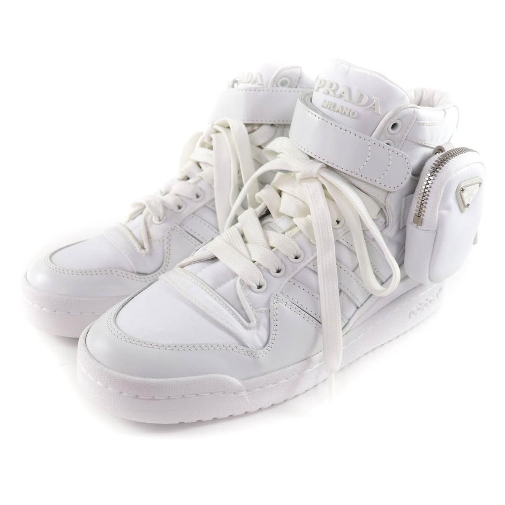 Excellent PRADA High cut sneakers Re-Nylon Triangle Plate leather 24 2TG193 Used