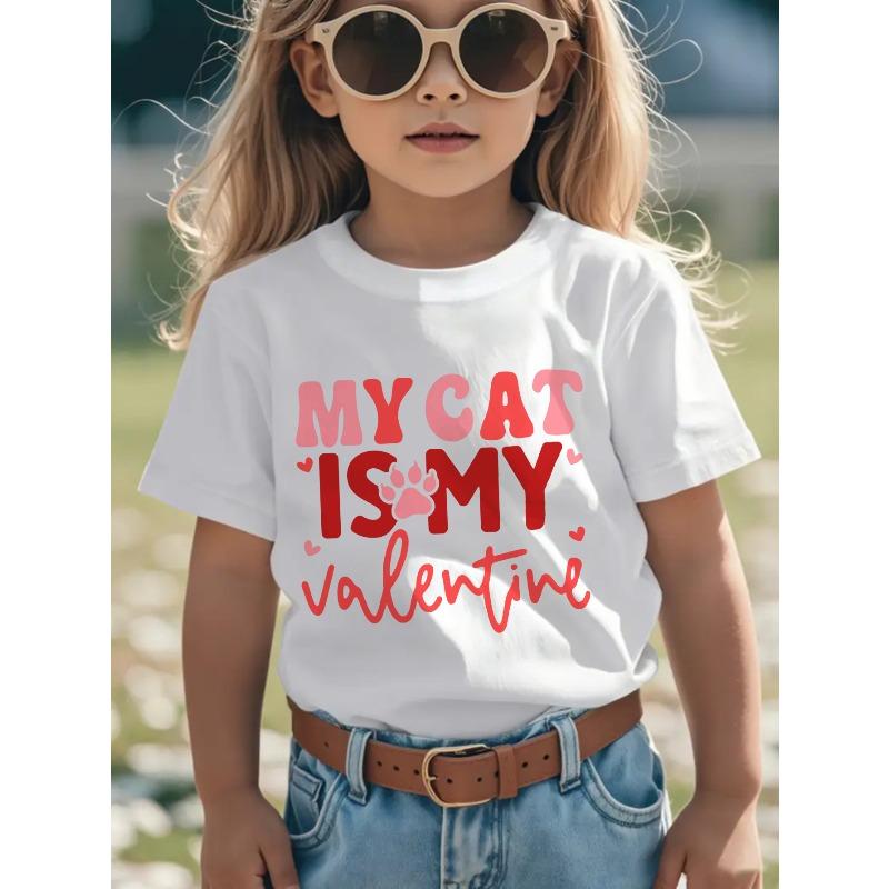 European sizes Girls Valentines Day T Shirt My Cat Is My Valentine Paw Print Design Cute Holiday School Outfit Gift for Kids