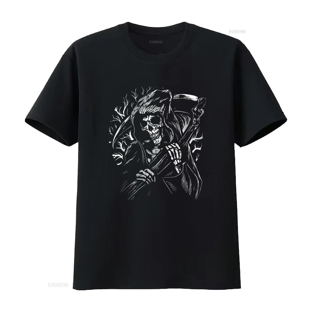 Womens T Shirt Cool Grim Reaper Black 2XL vintage Washed streetwear fashion Breathable Slightly Comfortable Casual Soft