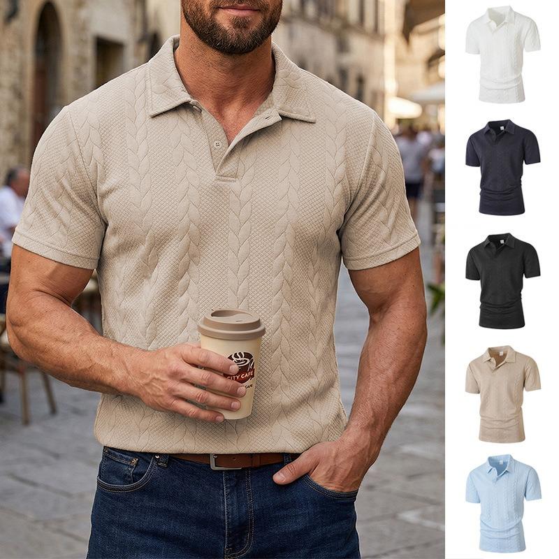 Spring and Summer Jacquard Multi-color Casual T-shirt Lapel Men's Solid Color Fashion Sports Top Short-sleeved Polo Shirt
