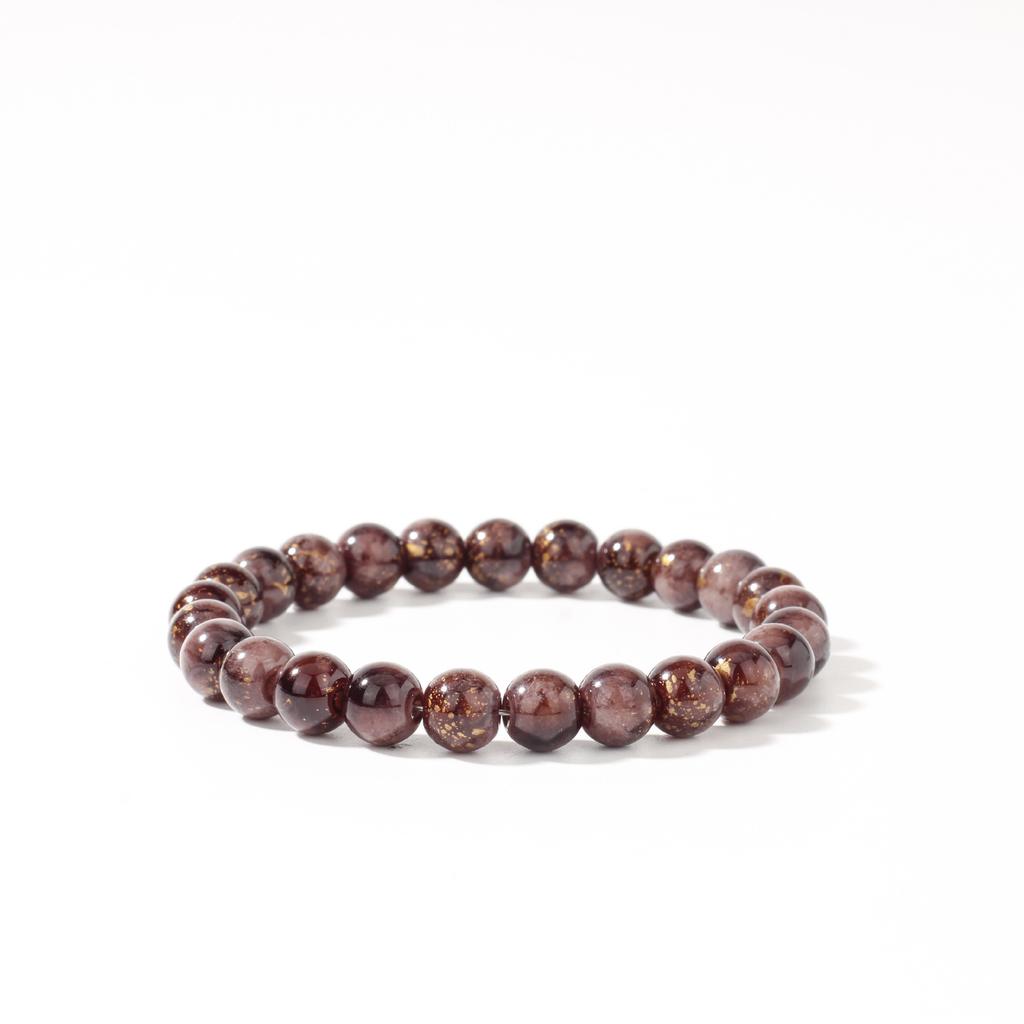Festive Gifts Dark Red Gold Speckle Stone Beaded Bracelet Elegant Fashion Jewelry For Women Daily Wear Gift