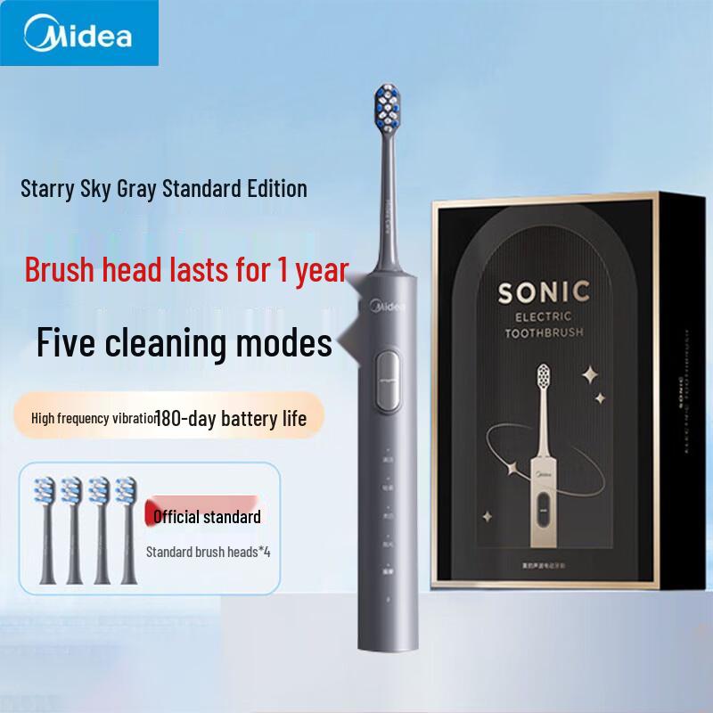 Experience superior oral care with the Midea S1PX Sonic Electric Toothbrush. Featuring a powerful magnetic levitation motor and 5 distinct cleaning modes, this IPX7 waterproof toothbrush boasts an impressive 180-day battery life. Designed for adults and students, it offers convenient Type-C charging and comes with soft bristles for gentle yet effective cleaning. CN plug (adapter included)