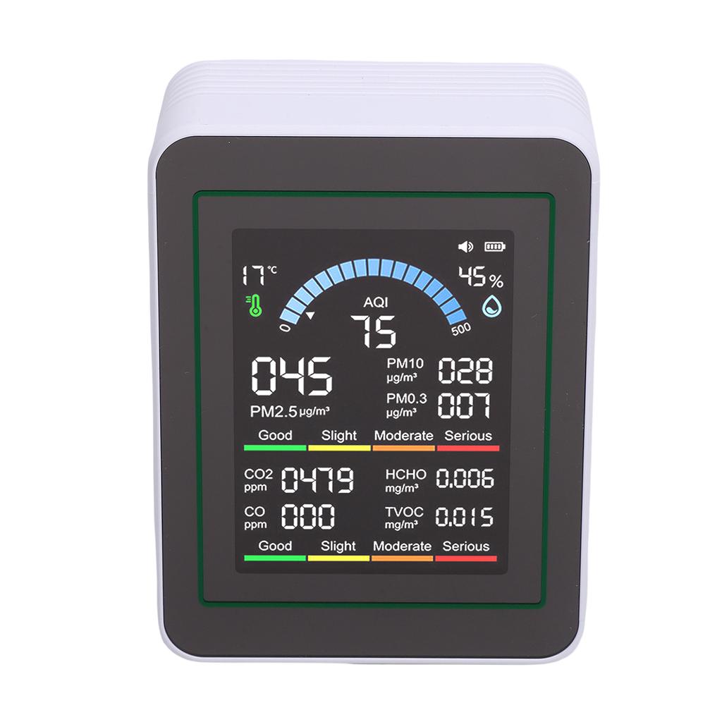 10-in-1 Detection, All-Round Health Guard: This portable detector handles 10 detection items in one go, covering HCHO, TVOC, PM2.5, PM0.3, PM10, CO, CO₂, temperature and humidity. From tiny particles to gas indicators, the detector captures environmental information comprehensively, building a protective wall for you and your family s breathing health!
