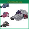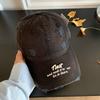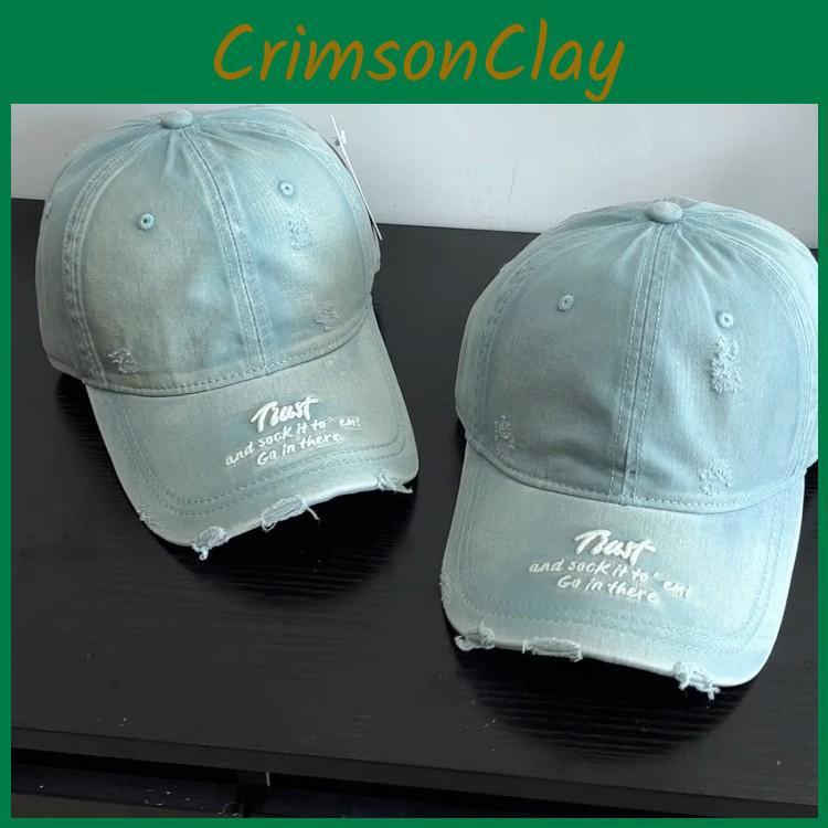 This vintage-style, distressed blue baseball cap features bold embroidered letter designs and a wide brim for sun protection. Made of 100% linen, it measures adjustable to fit different head sizes. Ideal for casual outings or streetwear looks, its easy to maintain with a wipe-clean surface.