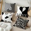 Black White Couple Line Cushion Cover Soft Plush Fabric DoubleSided Printed Sofa Cushion Cover for All Seasons Home Decor Gift