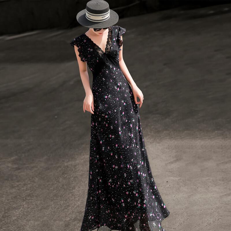 Lanseer French Elegant Lace V-Neck Floral Midi Dress